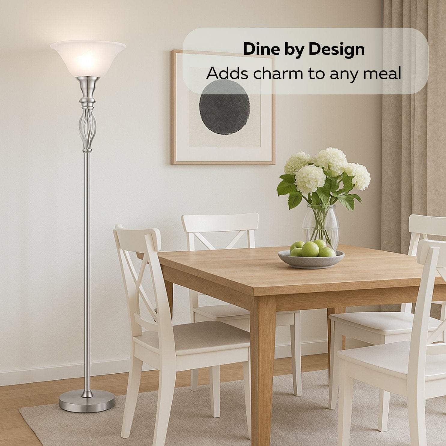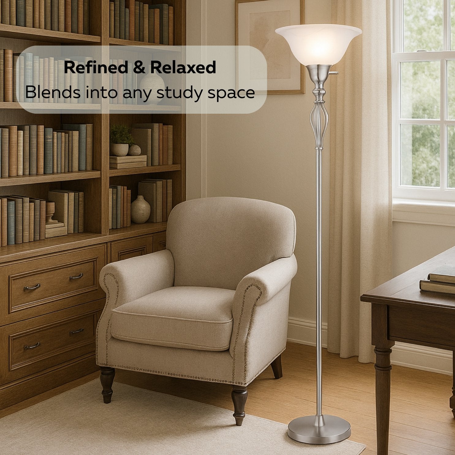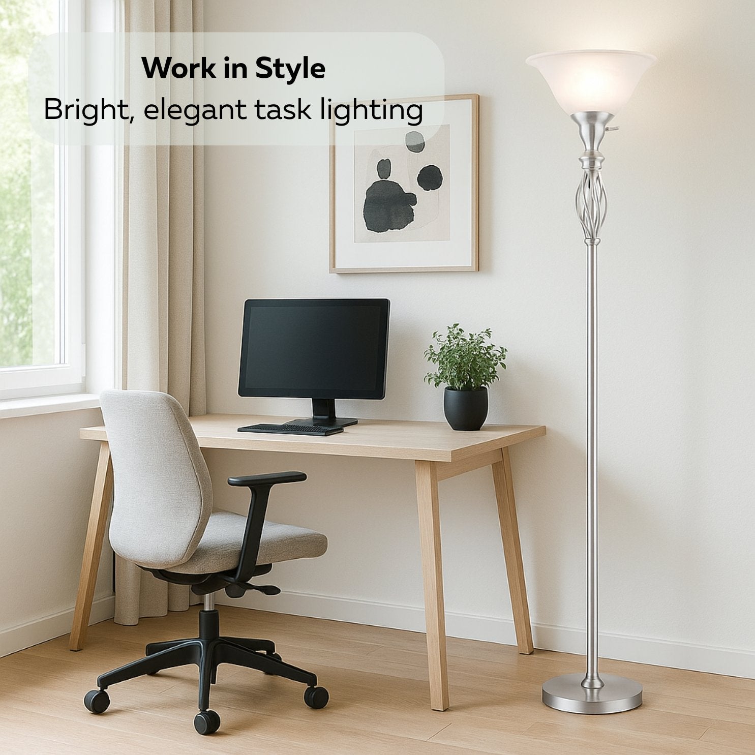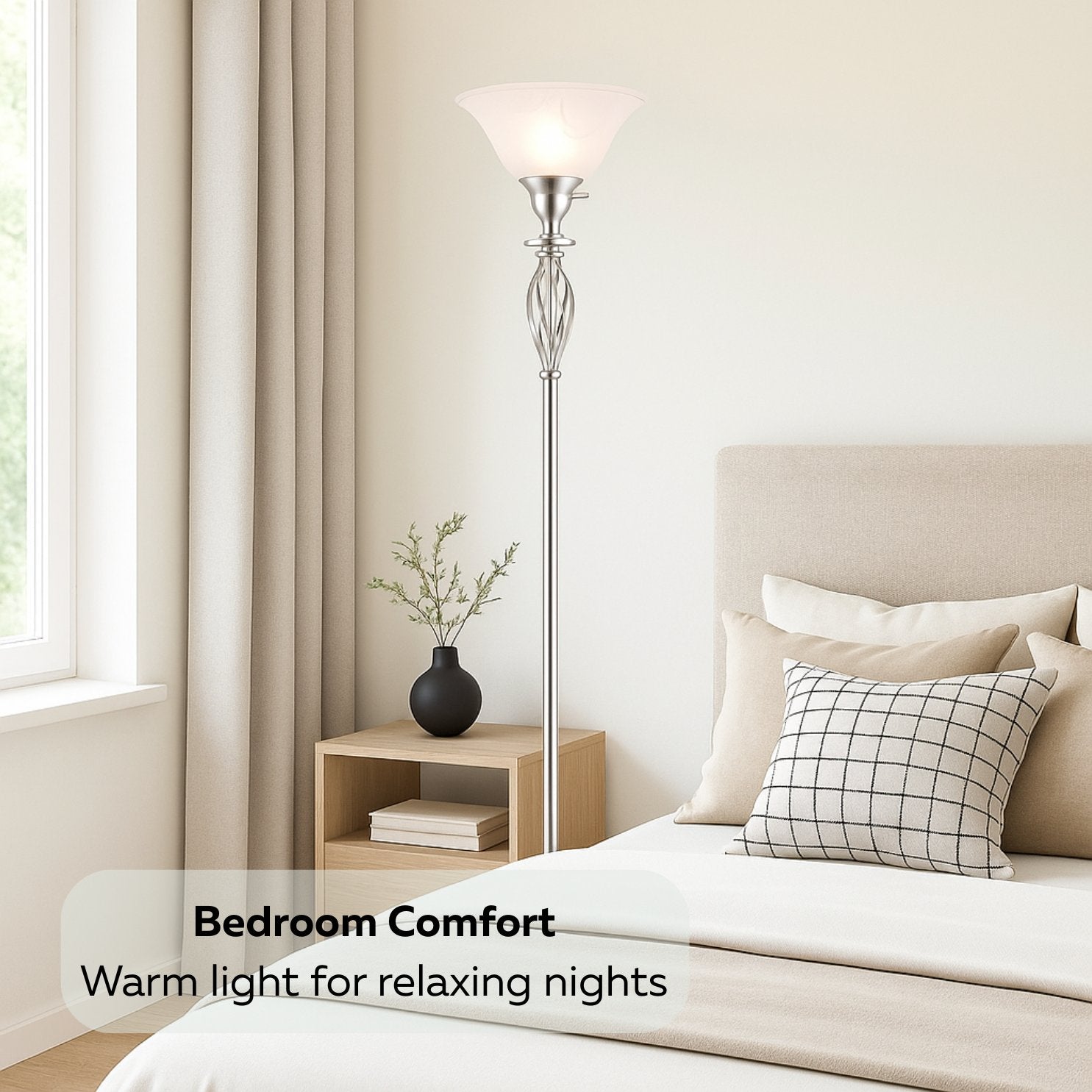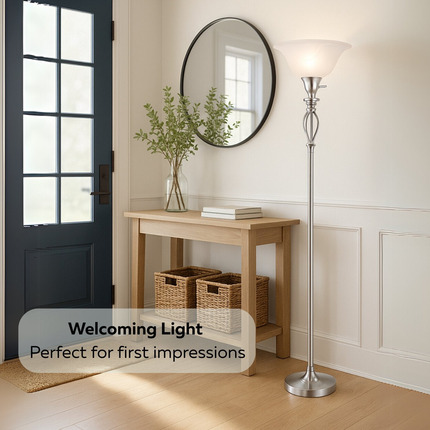 Iron Scroll Floor Lamp with Alabaster Glass Bowl Shade for Living Room Decor - Tall Floor Lamp - Traditional Iron Scrollwork Floor Lamp for Bedroom Floor Lamps for Living room – 70" Tall- (Bronze)