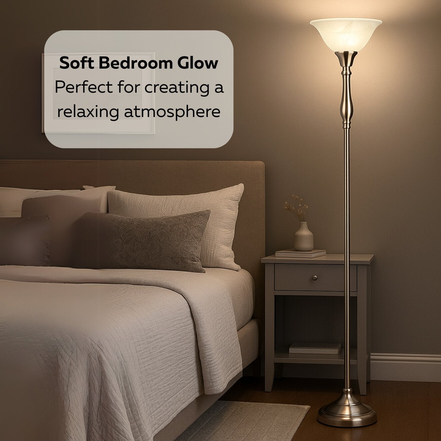 Royal Floor Lamp With Bronze Finish And Amber Alabaster Glass Shade -looking For Floor Lamp For Bedroom, Standing Lamp Or Floor Lamps For Living Room This Torchiere Floor Lamp Is A Great Choice