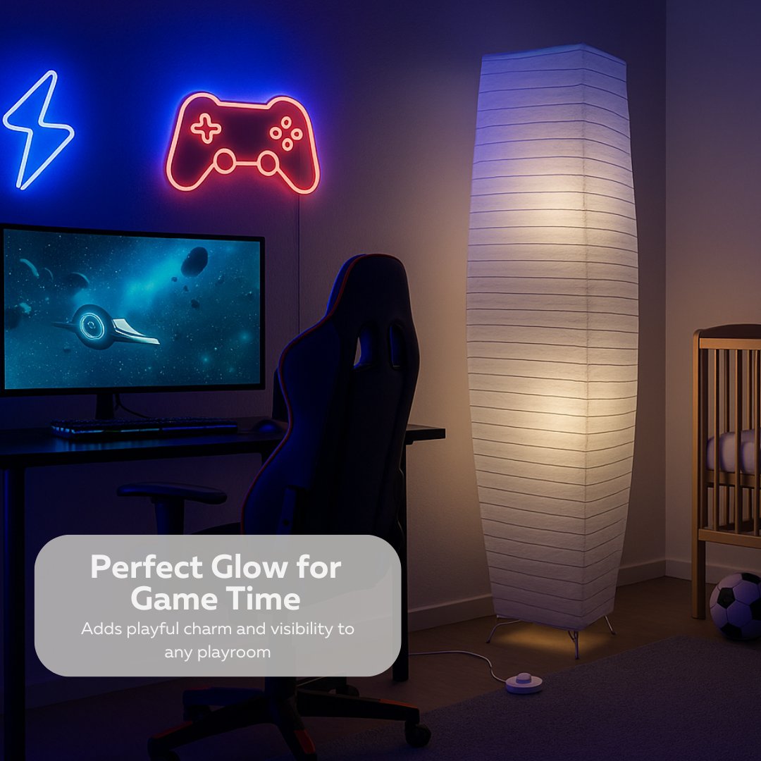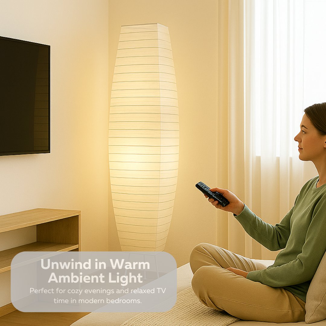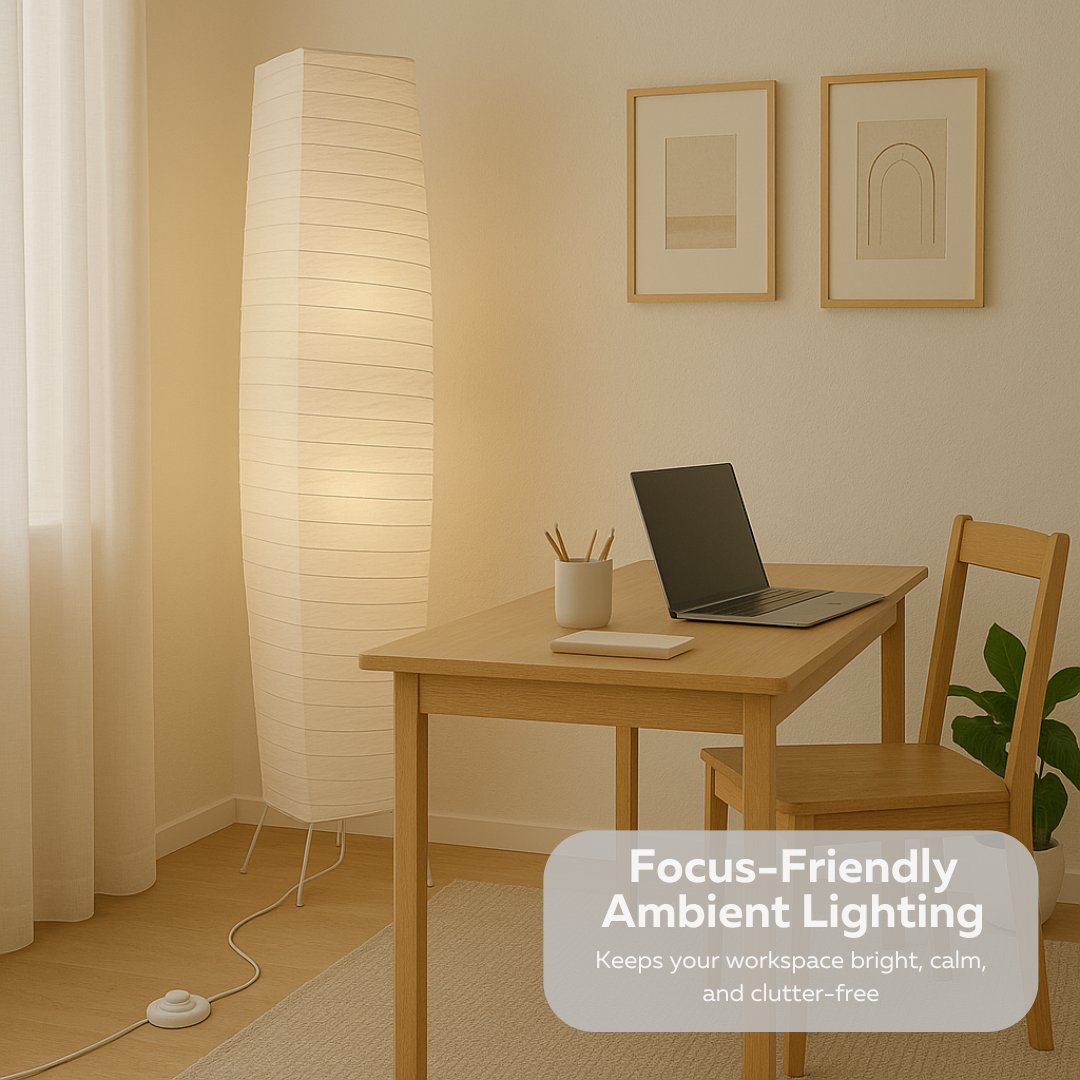 Japanese Rice Paper Floor Lamp 50” Tall Chrome Base with White Paper Shade