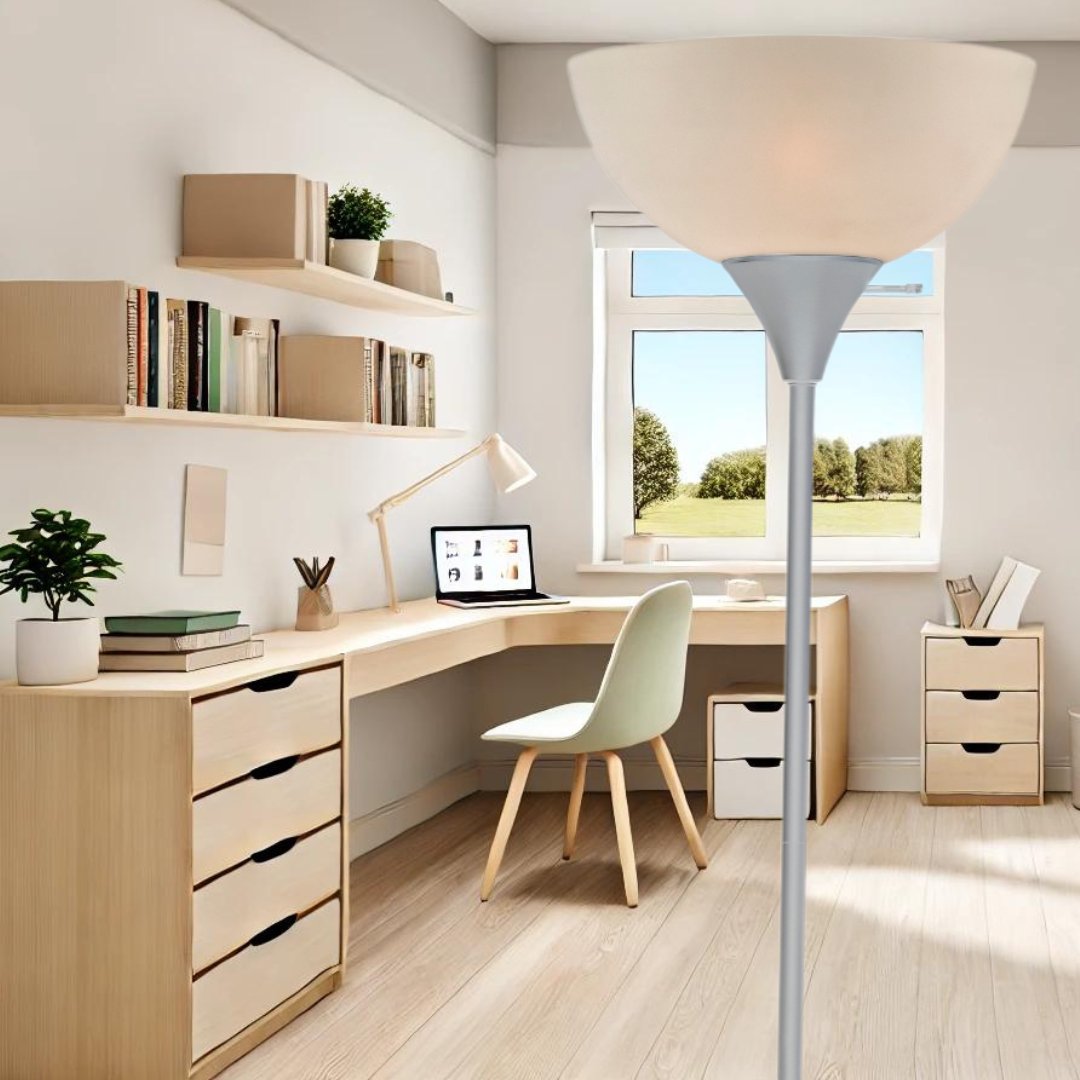 Stand Up Floor Lamp in Black - Modern Corner Light with White Opal Bowl Shade 72" Tall, 150-watt