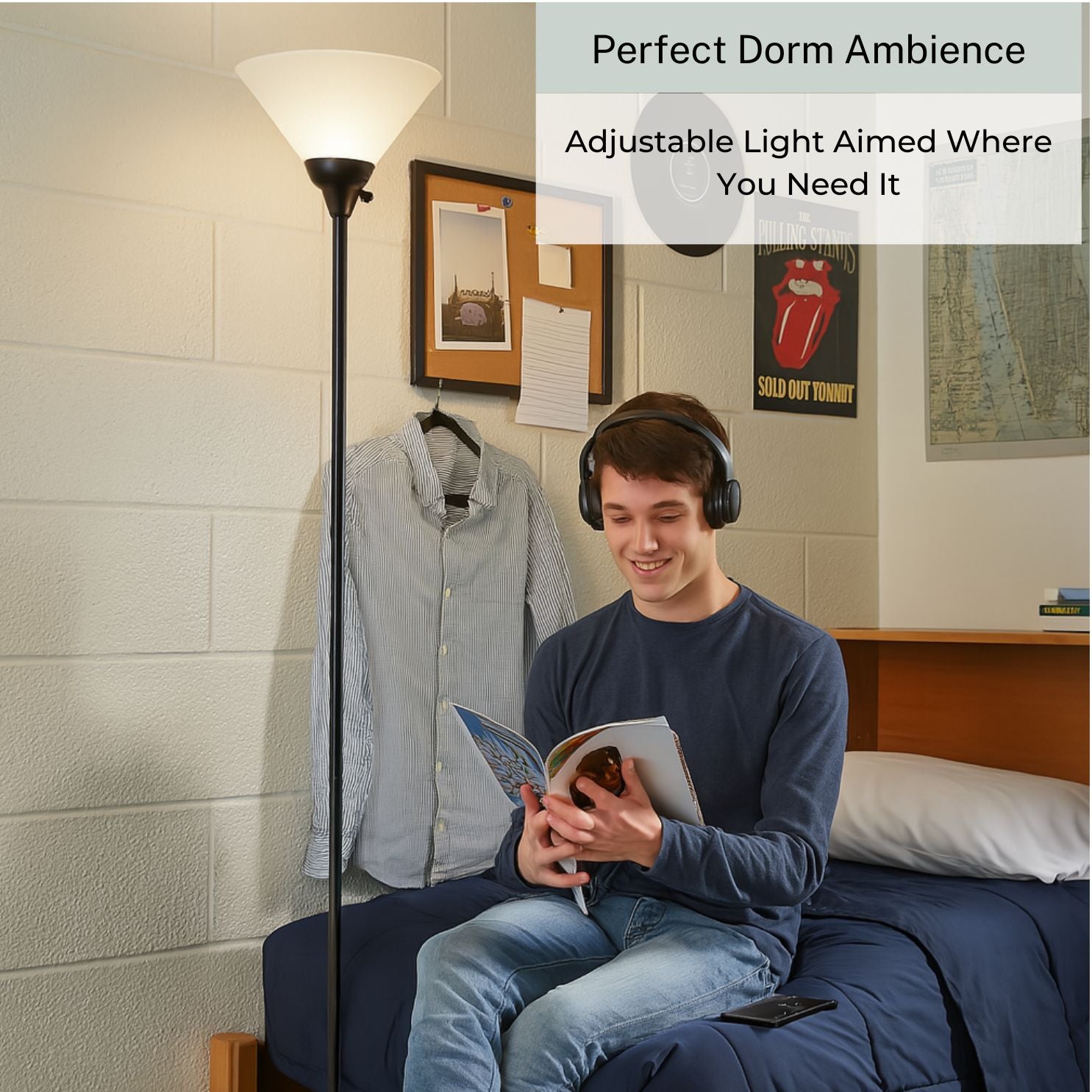 Torchiere Floor Lamp - Contemporary Standing Lamp with Opal White Cone Shaped Shade