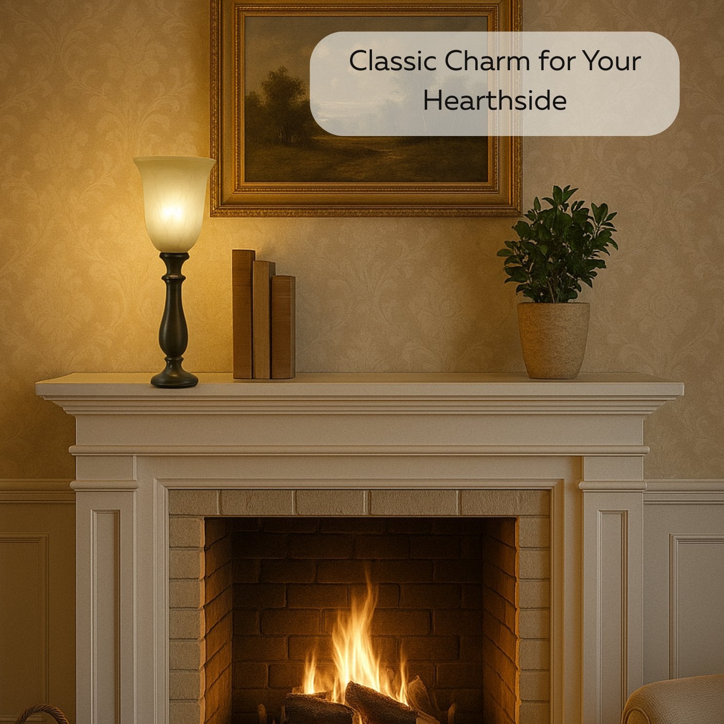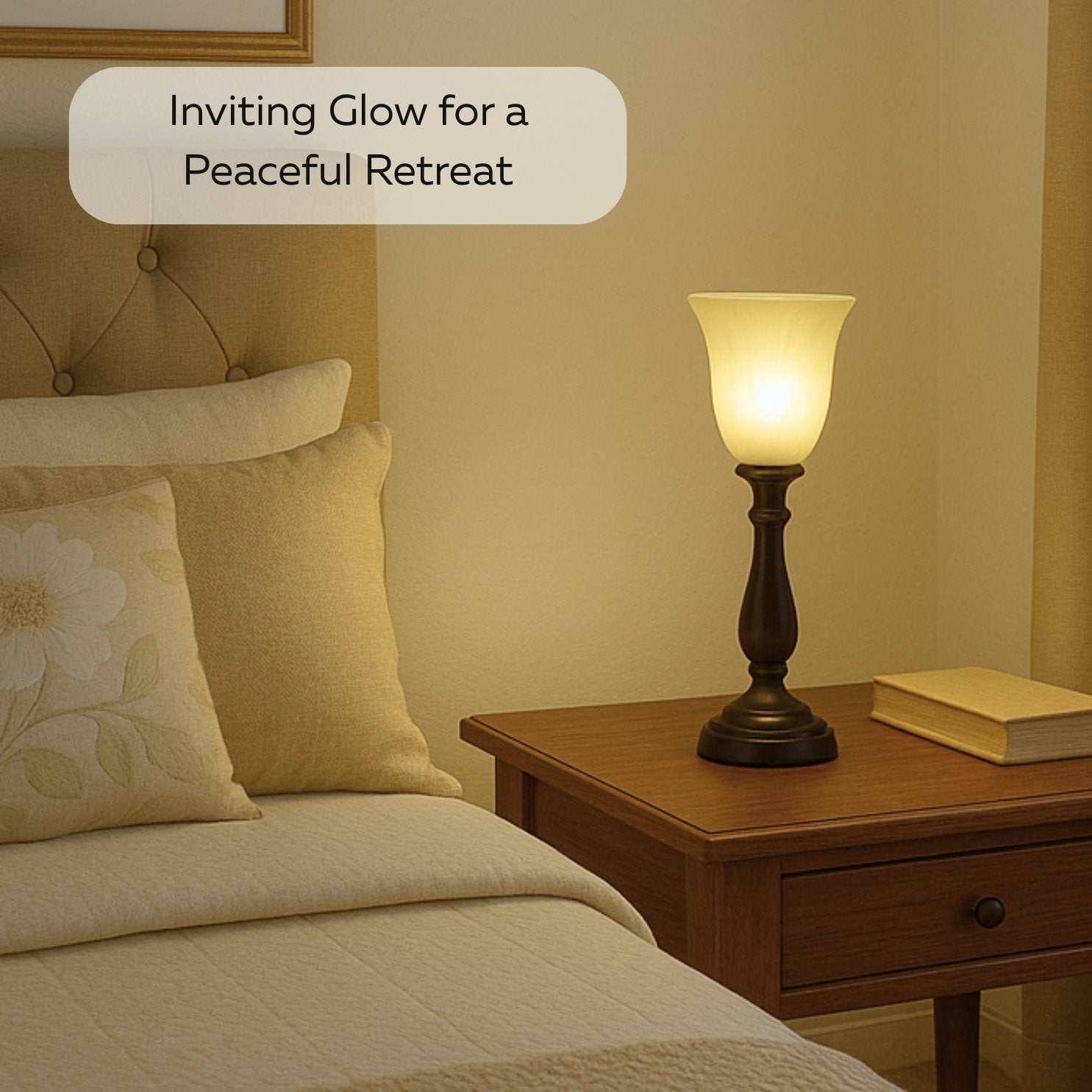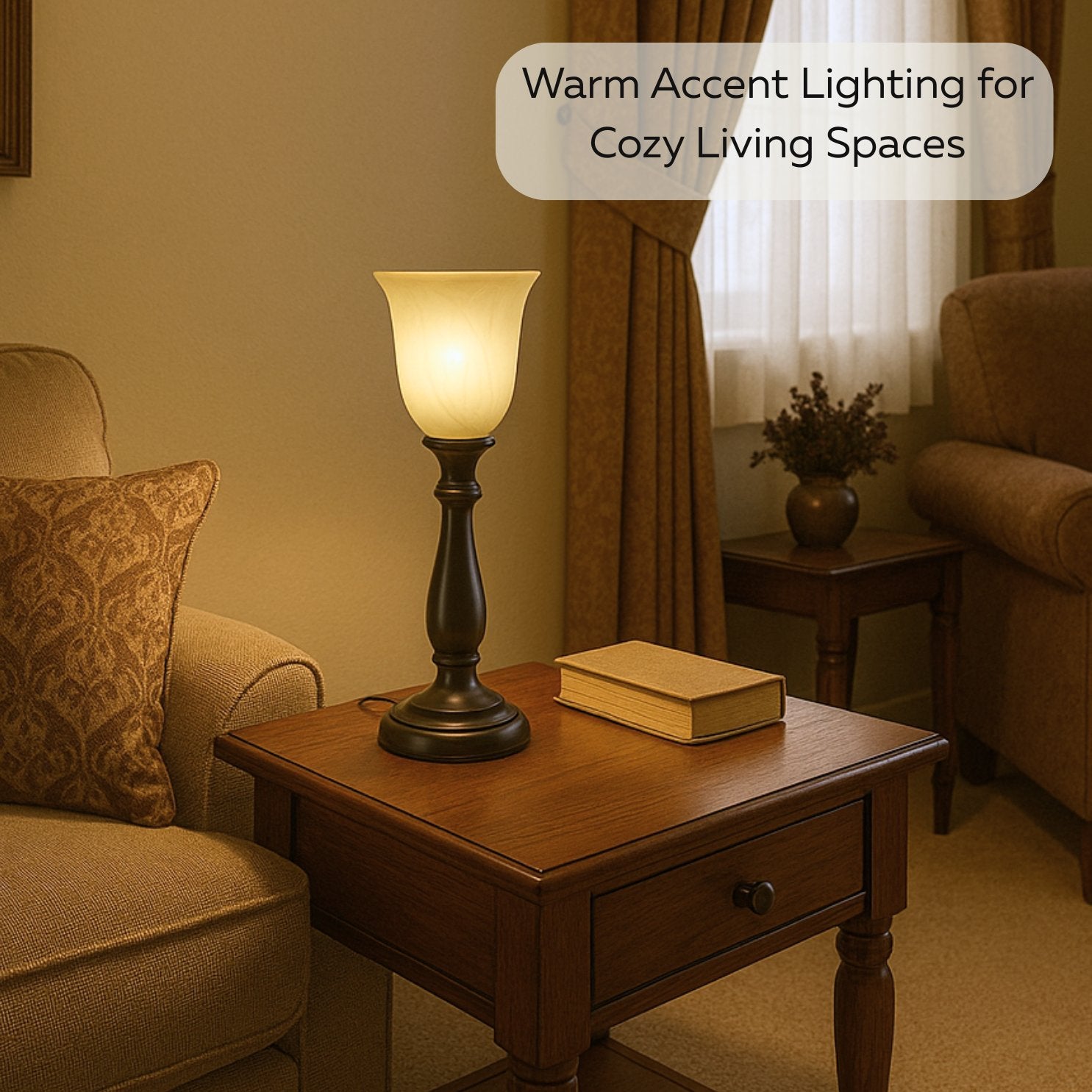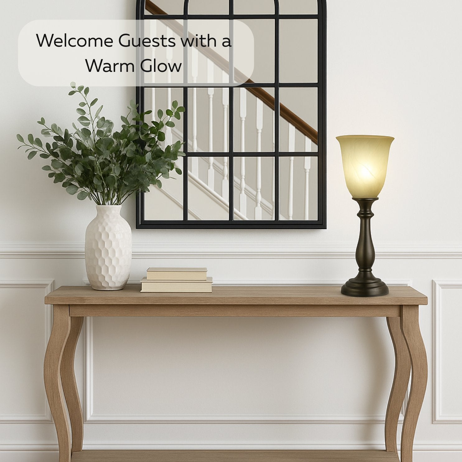 Rustic Bronze Table Lamp with Marbleized Alabaster Glass Lamp Shade - Antique Style Table Lamps for Living Room with Thick Glass Shade - Vintage Farmhouse Style Table Lamps for Bedroom (Bronze)